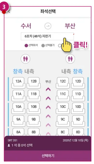원하는 열차의 [좌석선택]을 눌러줍니다.
