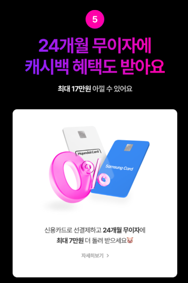 5. 24개월 무이자에 캐시백 혜택도 받아요.