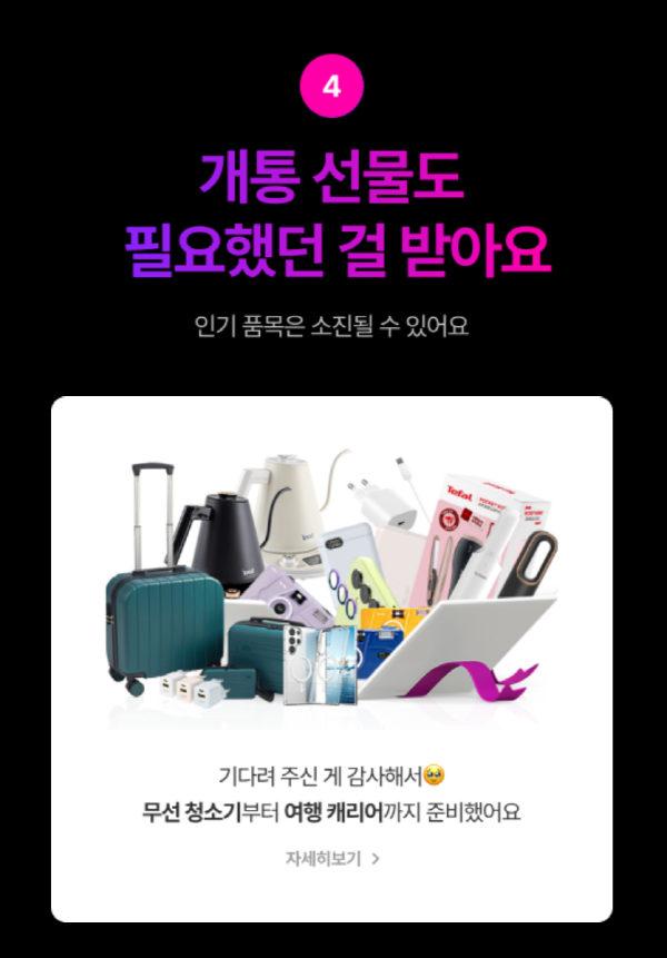 4. 개통 선물도 필요했던 걸 받아요.