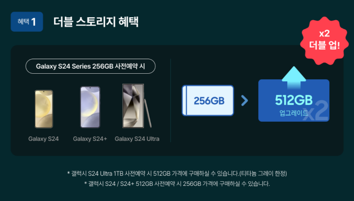 갤럭시 S24 시리즈 256GB -> 512GB 업그레이드