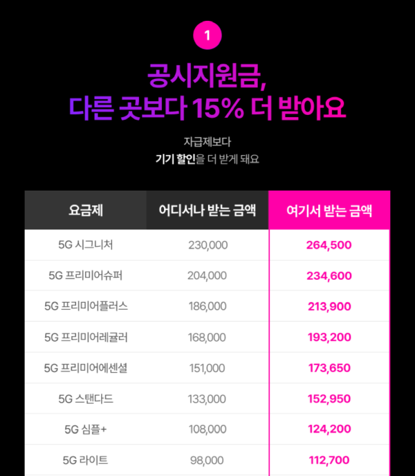 1. 공시지원금, 다른 곳보다 15% 더 받아요.