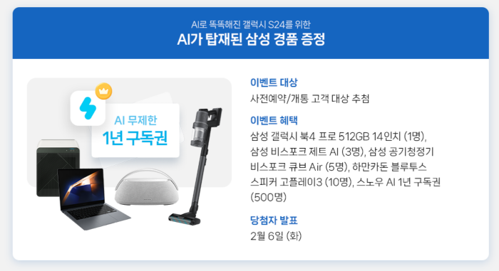 AI가 탑재된 삼성 경품 증정