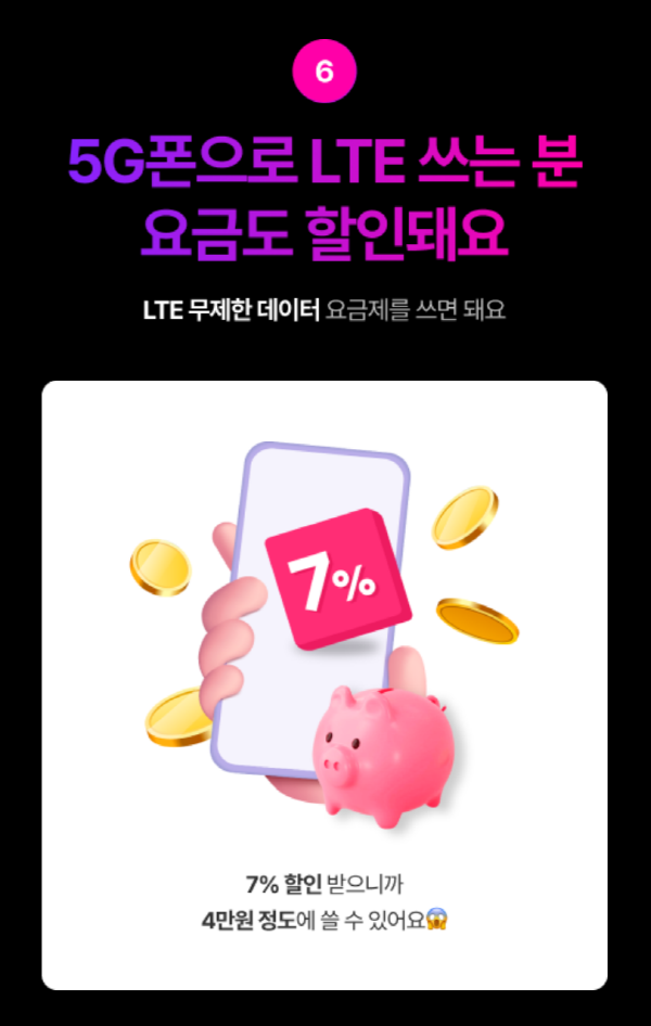 6. 5G폰으로 LTE 쓰는 분 요금도 할인돼요.