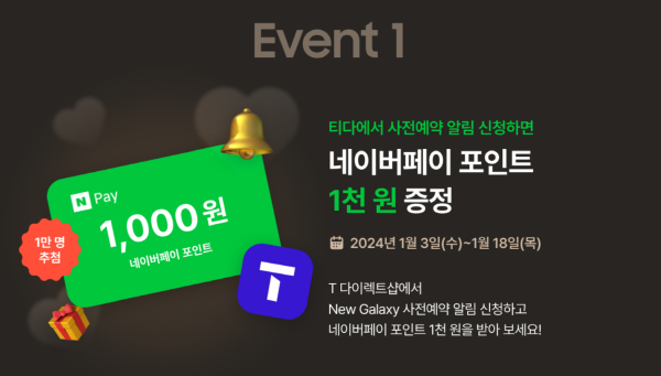 티다에서 사전예약 알림 신청을 하시면 네이버페이 포인트 1천원을 증정합니다.