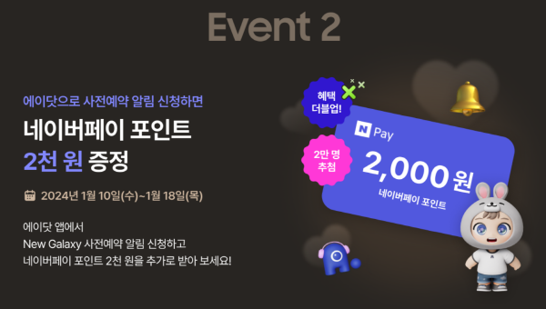 에이닷으로 사전예약 알림 신청을 하시면 네이버페이 포인트 2천원을 증정합니다.
