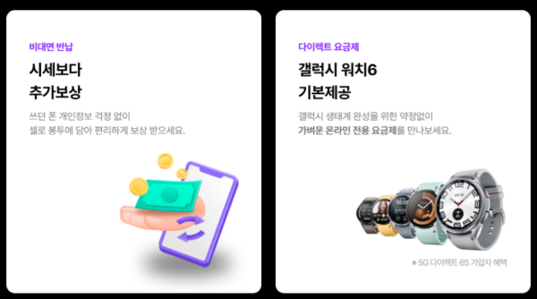 다이렉트 요금제 선택시 갤럭시 워치6 기본 제공