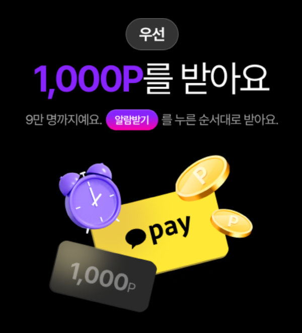 알림받기를 누르면 선착순 9만 명에게 1000포인트를 드립니다.