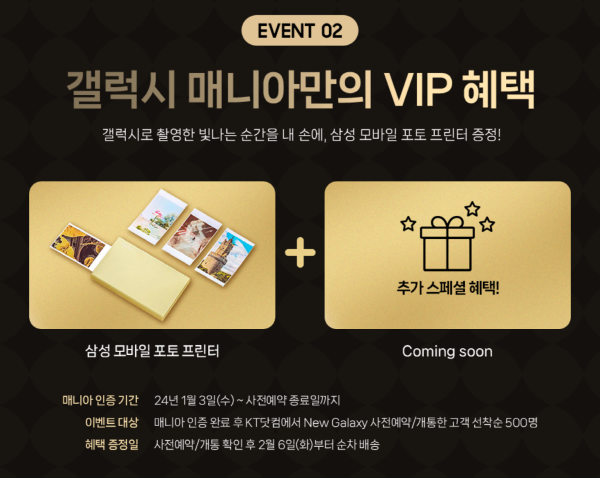 이벤트대상 : 매니아 인증 완료 후 KT닷컴에서 갤럭시 사전예약/ 개통한 고객 선착순 500명
