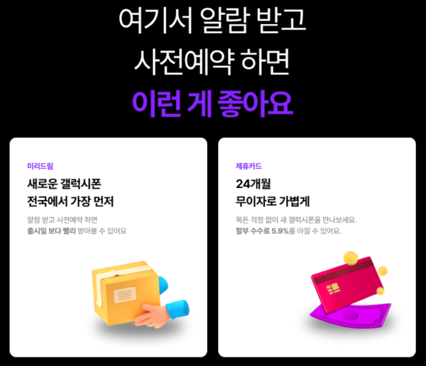 SKT, KT, LG 3개 통신사에서는 사전예약이 시작되기 전에 사전알람을 하면 여러가지 혜택을 줍니다.