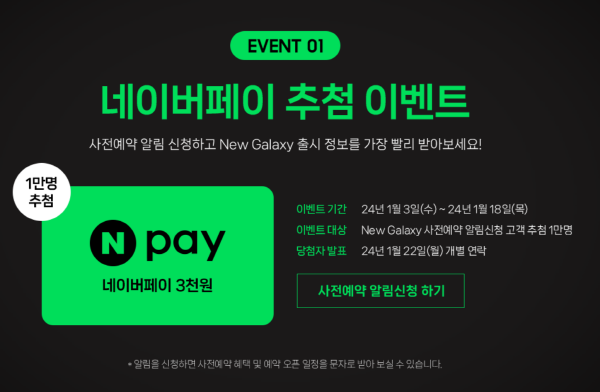 이벤트 대상 : 갤럭시 사전예약 알림 신청 고객 추첨 1만명