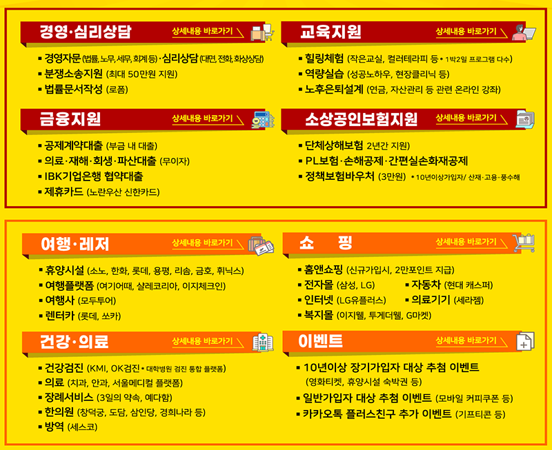 경영자문, 경리프로그램 지원, 노란우산 제휴카드 혜택
