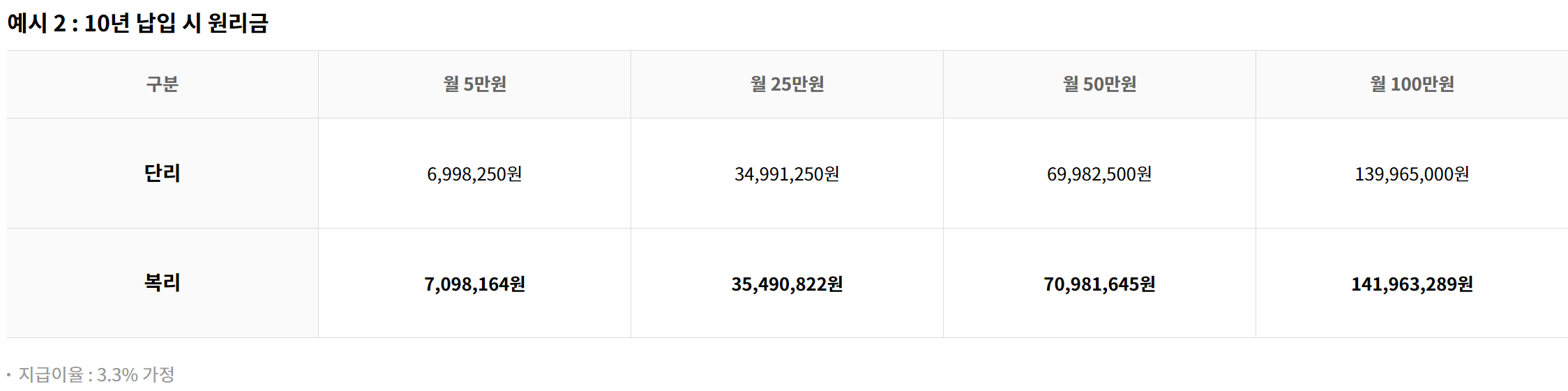 소기업·소상공인공제는 연 단위 복리로 이자가 적립되므로 장기 가입자에게 유리한 제도입니다.