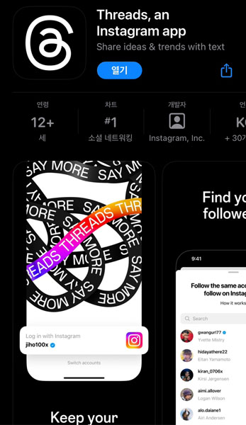 인스타그램 기반 앱: 스레드는 인스타그램 기반의 앱으로, 인스타그램 로그인 정보를 활용하여 계정을 생성할 수 있으며, 인스타그램의 팔로잉 연동도 가능합니다.