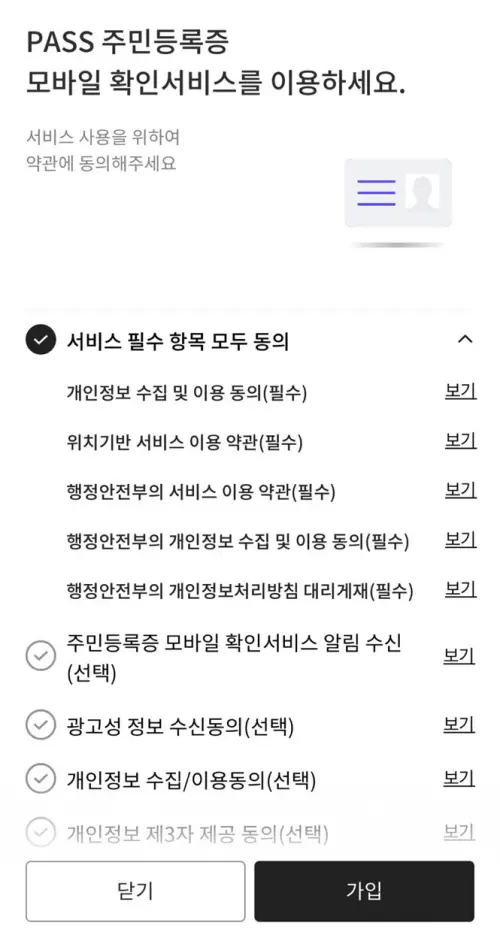 PASS 앱 모바일 신분증 발급방법