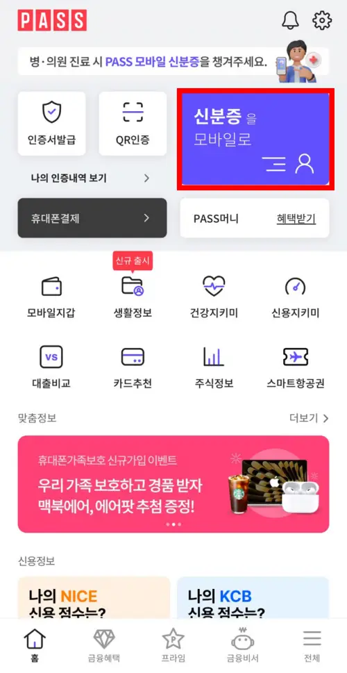 PASS 앱은 이동통신사에서 제공하는 본인 인증 서비스 앱으로, 모바일 신분증 발급도 간편하게 할 수 있는 방법 중 하나입니다.
