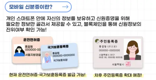 이는 기존의 플라스틱 신분증을 대체할 수 있으며, 언제 어디서나 스마트폰만 있으면 신분을 증명할 수 있다는 장점이 있습니다.