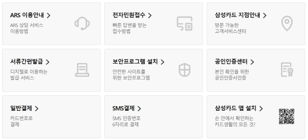 스마트폰 전용 서비스로, 삼성카드 홈페이지와 연동되어 해당 화면을 직접 보면서 업무를 처리할 수 있는 서비스입니다.