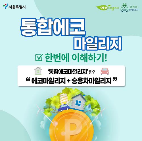 서울시에서 에너지 절약 프로그램인 에코마일리지와 승용차마일리지 제도를 합쳐서 통합에코 홈페이지가 오픈하였습니다.
