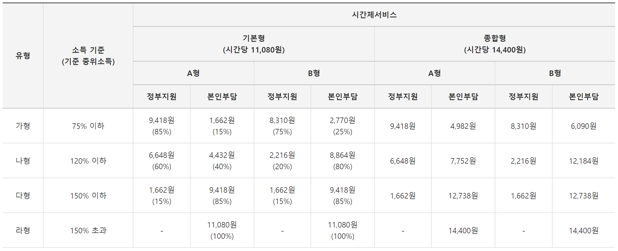 정부지원 시간을 초과가 될 경우 서비스 비용을 전액으로 본인이 부담해서 서비스 이용하실 수 있습니다.