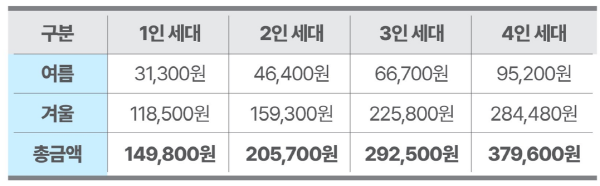 | 겨울 | 118,500원 | 159,300원 | 225,800원 | 284,400원 |