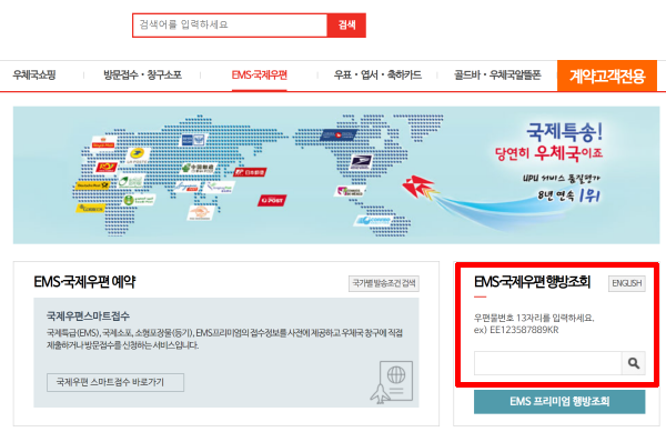 EMS 프리미엄 홈페이지를 통해서 통관정보, 배달소요일, 휴일정보 등 정보 확인이 가능합니다.
