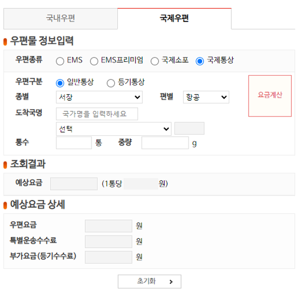 우체국 EMS 요금표