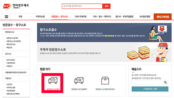 방문접수 우체국소포 이용방법