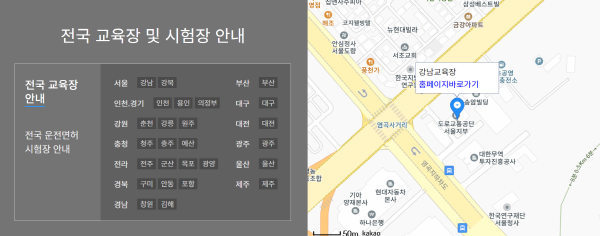 각 지역마다 운전면허 교육장과 시험장이 있는데 아래 링크에서 검색해 보실 수 있습니다.