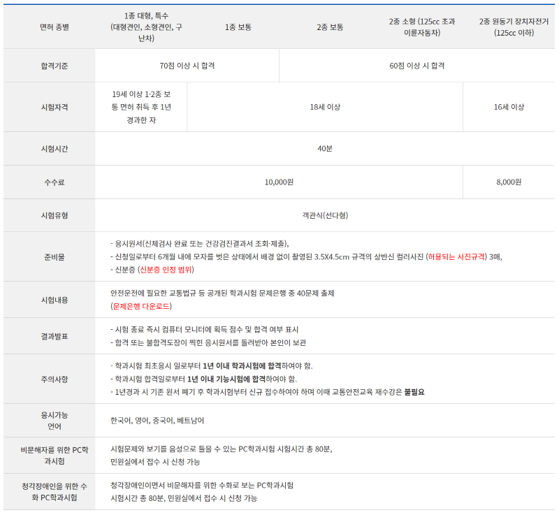 1종 보통, 2종보통, 2종 소형 : 10,000원