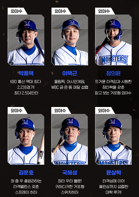 외야수 : 박용택, 이택근, 정의윤, 김문호, 국해성, 윤상혁