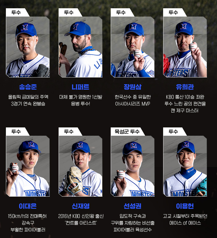 투수 : 송승준, 니퍼트, 장원삼, 유희관, 이대은, 신재영, 선성권, 이용헌