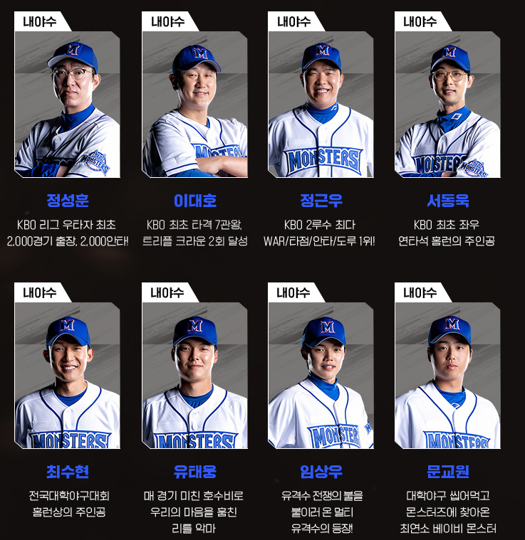내야수 : 정성훈, 이대호, 정근우, 서동욱, 최수현, 유태웅, 임상우, 문교원