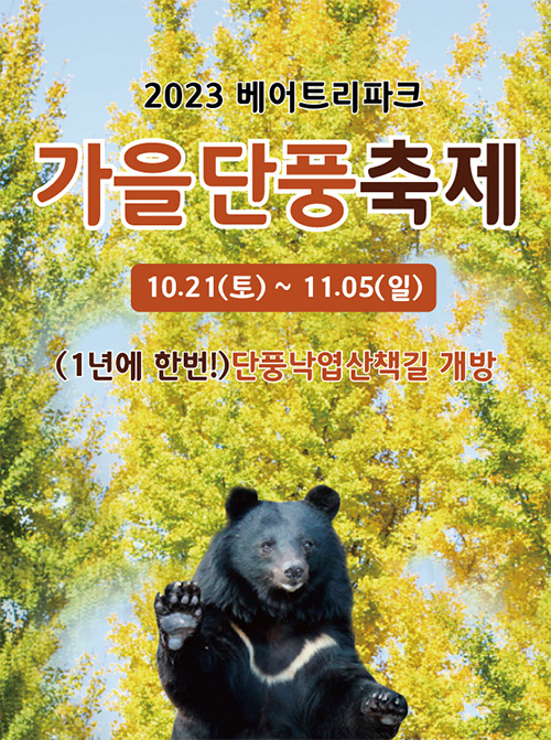 베어트리파크 단풍축제'는 단풍이 절정에 이르는 시기인 10월 중순 ~ 11월 초순에 개최됩니다.