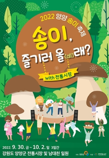 가을철 양양 송이 수확 시기에 맞춰 송이버섯을 테마로 지역민들과 관광객들이 함께 음식을 맛보고, 놀이를 체험하는 양양의 대표축제입니다.