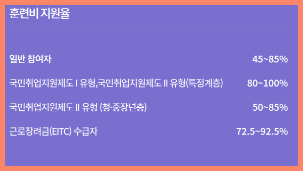 참여자에게는 처음 1회에 한하여 훈련비가 전액 지원됩니다. (자비부담금 없음)