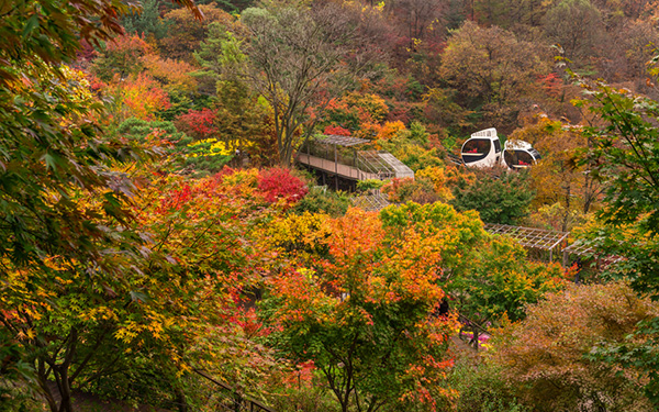 화담숲에서 빼놓을 수 없는 명소 중 하나는 바로 모노레일입니다. 모노레일을 타고 숲의 다양한 구역을 편리하게 돌아볼 수 있으며, 특히 가을철 단풍이 절경을 이루는 시기에 많은 인기를 끕니다. 모노레일은 가족 단위의 방문객이나 도보로 이동이 힘든 분들에게 적합한 교통 수단입니다.