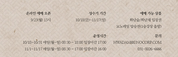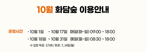 10월 18일 ~ 10월 31일 매일 (월~일) 08:30 ~18:00 입장마감 17:00