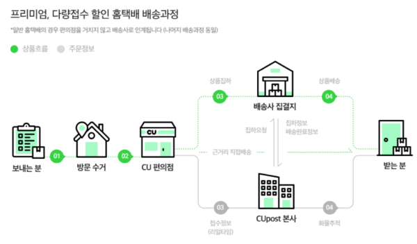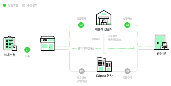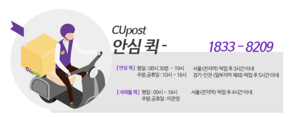 편의점 자체 물류망을 활용하여 편의점(CU)에서 편의점(CU)으로 배송되는 서비스입니다.