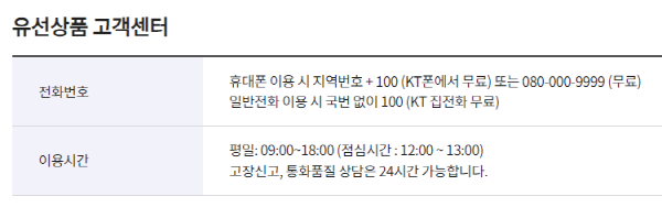유선상품 고객센터