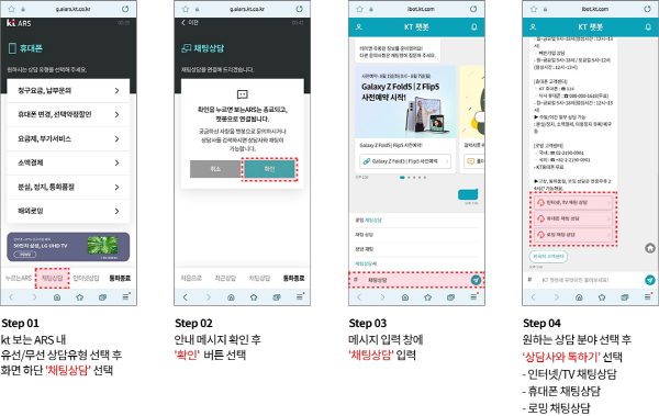 Step 01kt 보는 ARS 내 유선/무선 상담유형 선택 후 화면 하단 '채팅상담' 선택