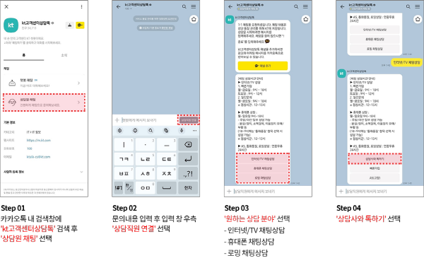 카카오톡 ‘kt고객센터상담톡‘ 검색 후 상담원 채팅 선택