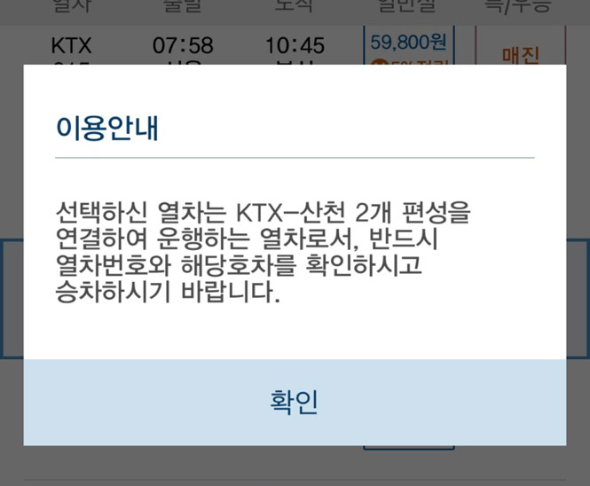 코레일 톡 어플에서는 일반실의 좌석이 매진되었을 경우에 발매가 됩니다.
