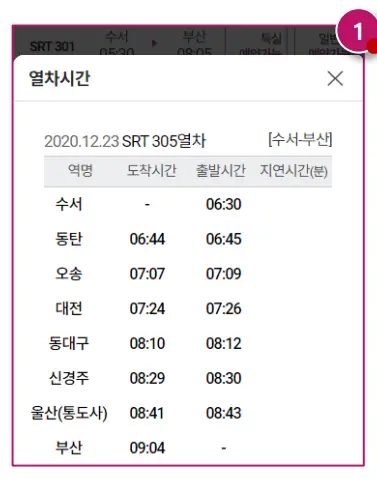 SRT 요금 시간표