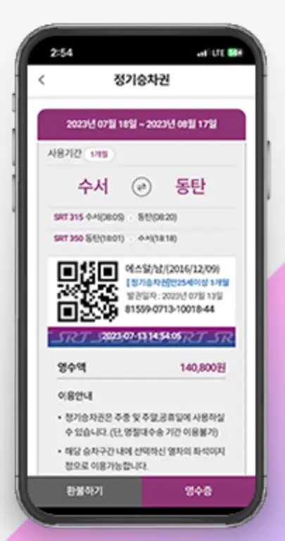 할인대상: 만 13세 이상 만 25세 미만의 SR 회원